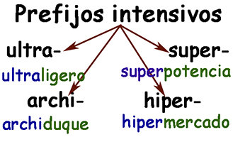 Algunos de los prefijos intensivos más frecuentes son estos: ultra-, super-, archi- e hiper-.