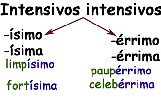 El sufijo intensivo más utilizado es -ísimo o -ísima, también se usa -érrimo o -érrima.