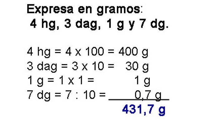 Los múltiplos del gramo son unidades mayores que el gramo.