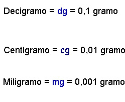 Son el decigramo (dg), el centigramo (cg) y el miligramo (mg).