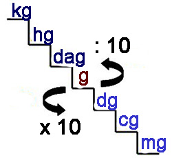 Cada unidad de masa es 10 veces mayor que la inmediata inferior y 10 veces menor que la inmediata superior.